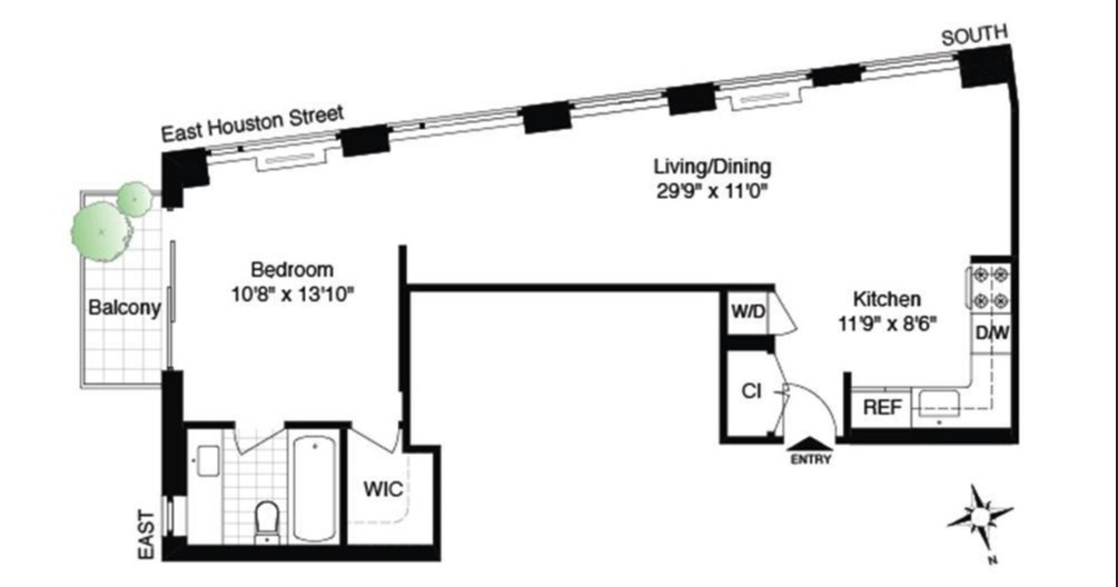 Actual entrance into building is 310 East Houston Street. Photos are of previous tenant furniture and current.