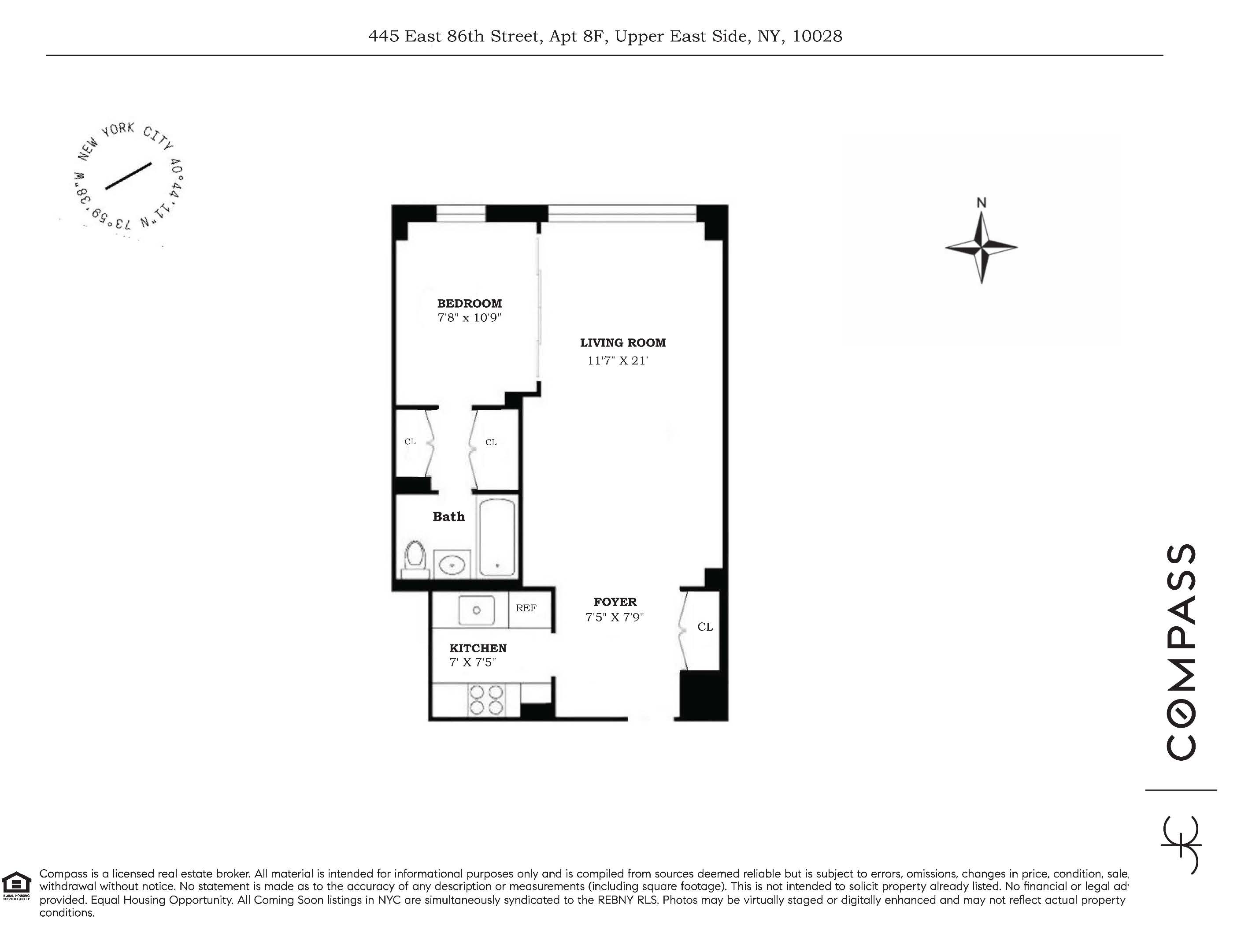 Discover this charming and spacious junior 1-bedroom apartment (approx. 600 sq ft) nestled in the vibrant Upper East Side at 445 East 86th Street, between First and York. Apartment #8F offers an oversized foyer with two large closets, leading you into a bright and airy living area adorned with north-facing windows that flood the space with natural light and open views. The layout is perfect for entertaining, with ample room for seating, dining, and even a home office! The kitchen is a blank canvas, ready for your personal touch, while the cleverly designed sliding doors transforms the space into a cozy one bedroom that comfortably fits a queen-sized bed, complete with abundant closet space and a dressing area.