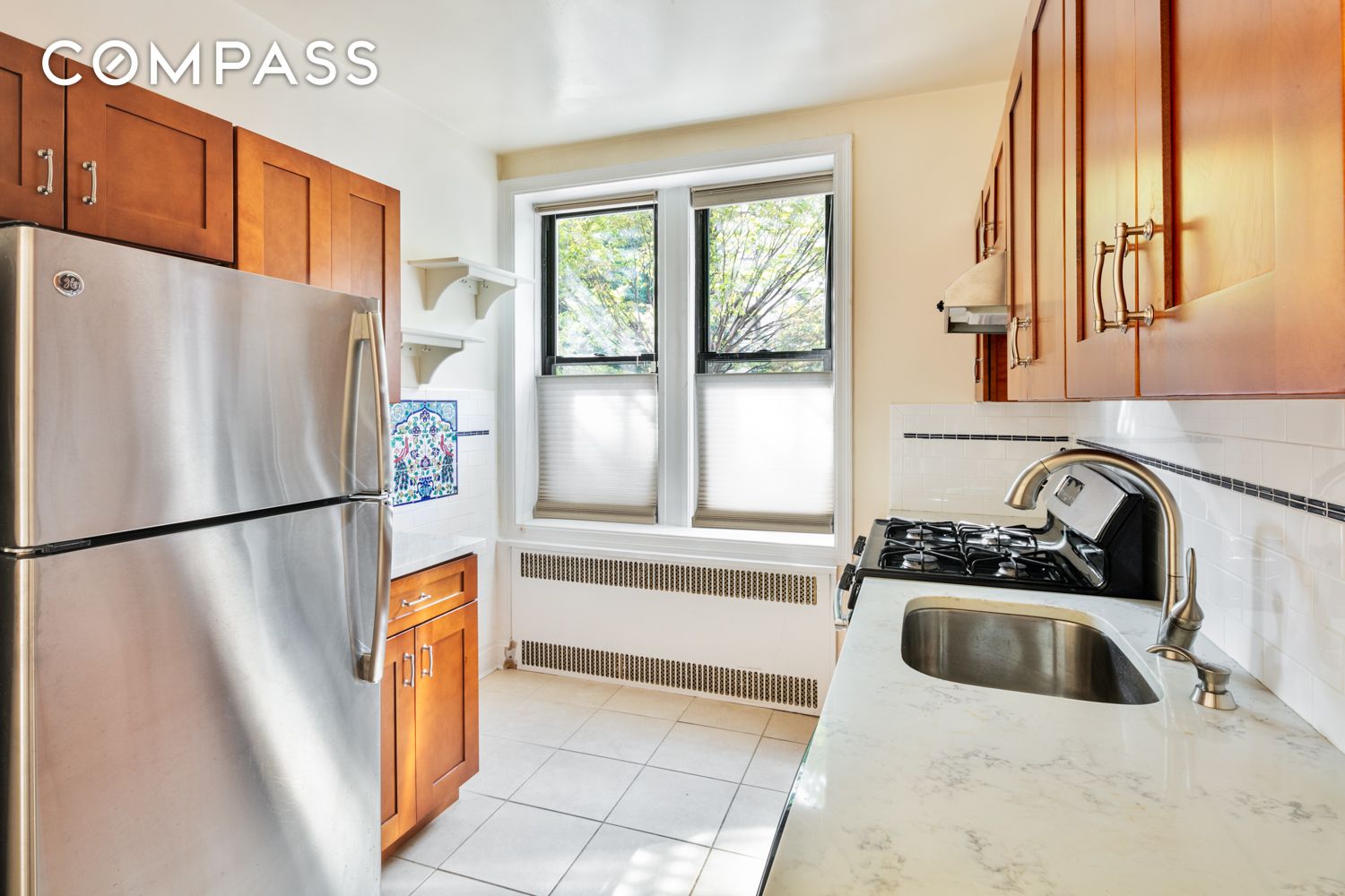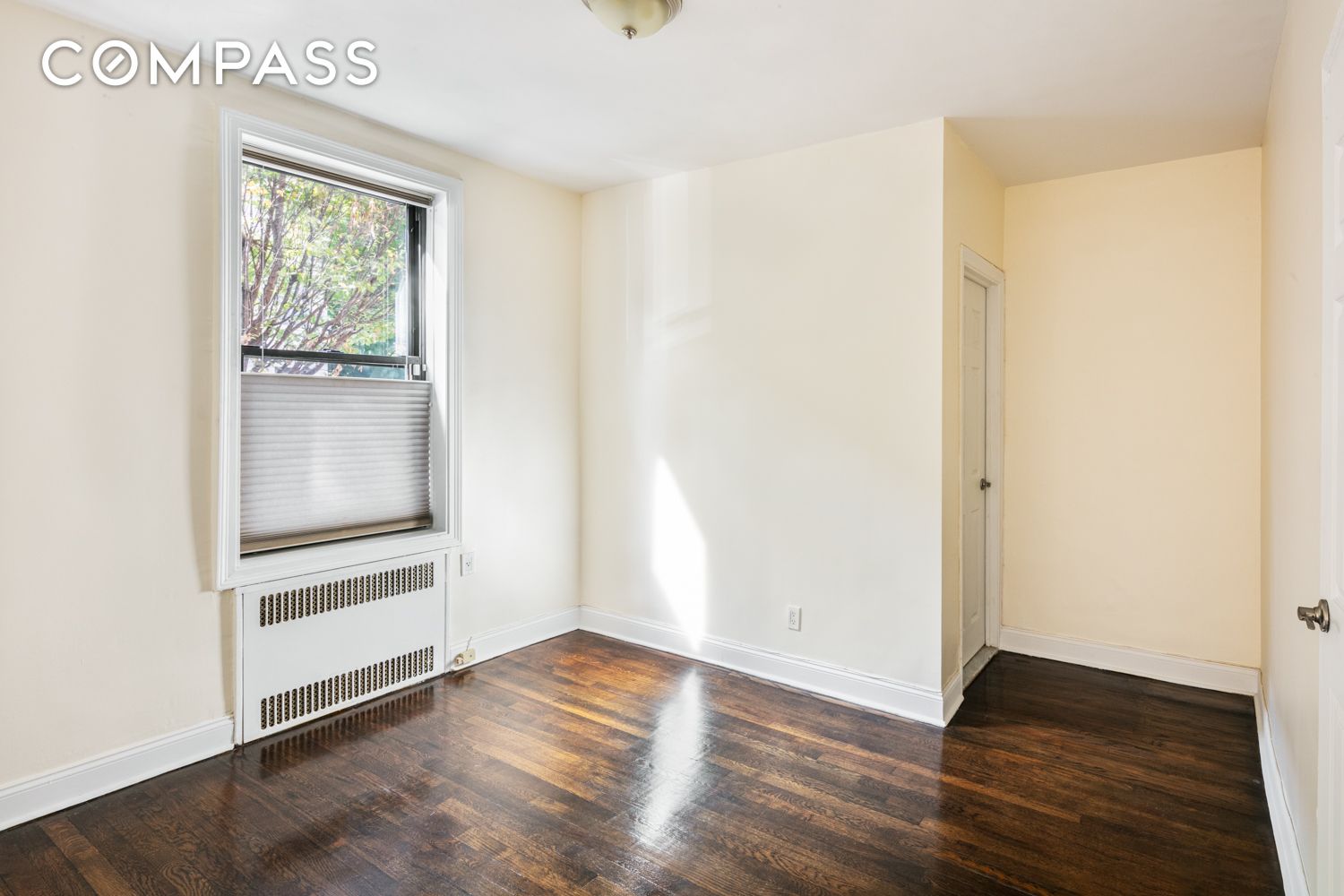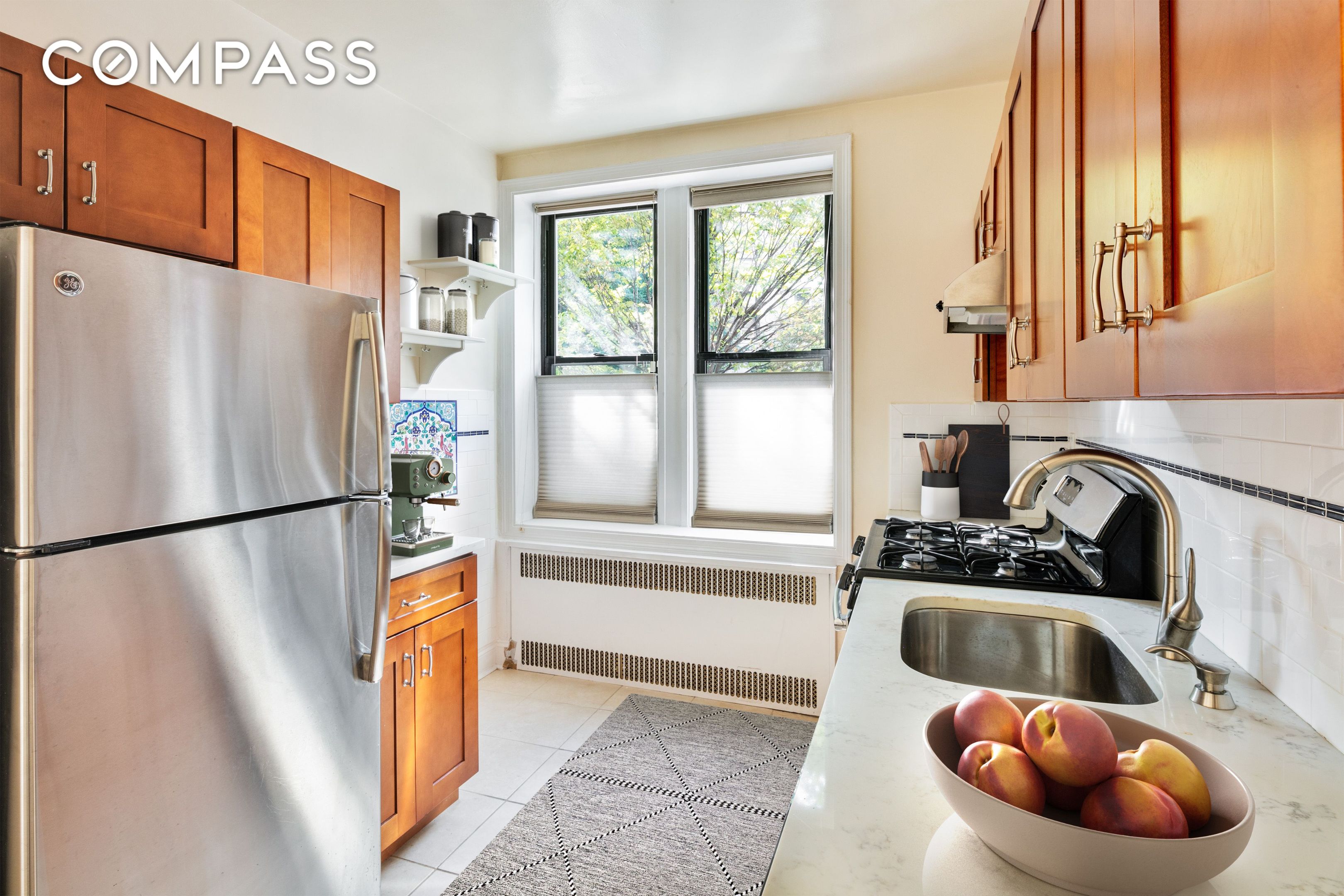 Sunny, cheeky studio gives privacy a new meaning in a studio apartment! Enter through a locked gate and up a few steps (your own private stoop) to your private entrance. It's a perfect place for a morning coffee or an evening glass of something relaxing. Overlooking a tree-lined street, it's a studio that lives like a one-bedroom. Separate eat-in kitchen with quartz counters, dishwasher, and two walls of cabinets. 30" fridge. Great storage opportunities with 3 large closets and a couple of different nooks perfect for a dresser. The living area can fit a 6 or 7-foot couch and is prewired for a wall-hanging TV. A queen-sized bed can fit on any wall along with a desk area, either in the kitchen, a nook in the hallway, or the bedroom. Wired for Optimum. Laundry in building. Bike storage, storage, and a beautiful common garden with BBQ for all in the building to use. Easy board approval from the coop.